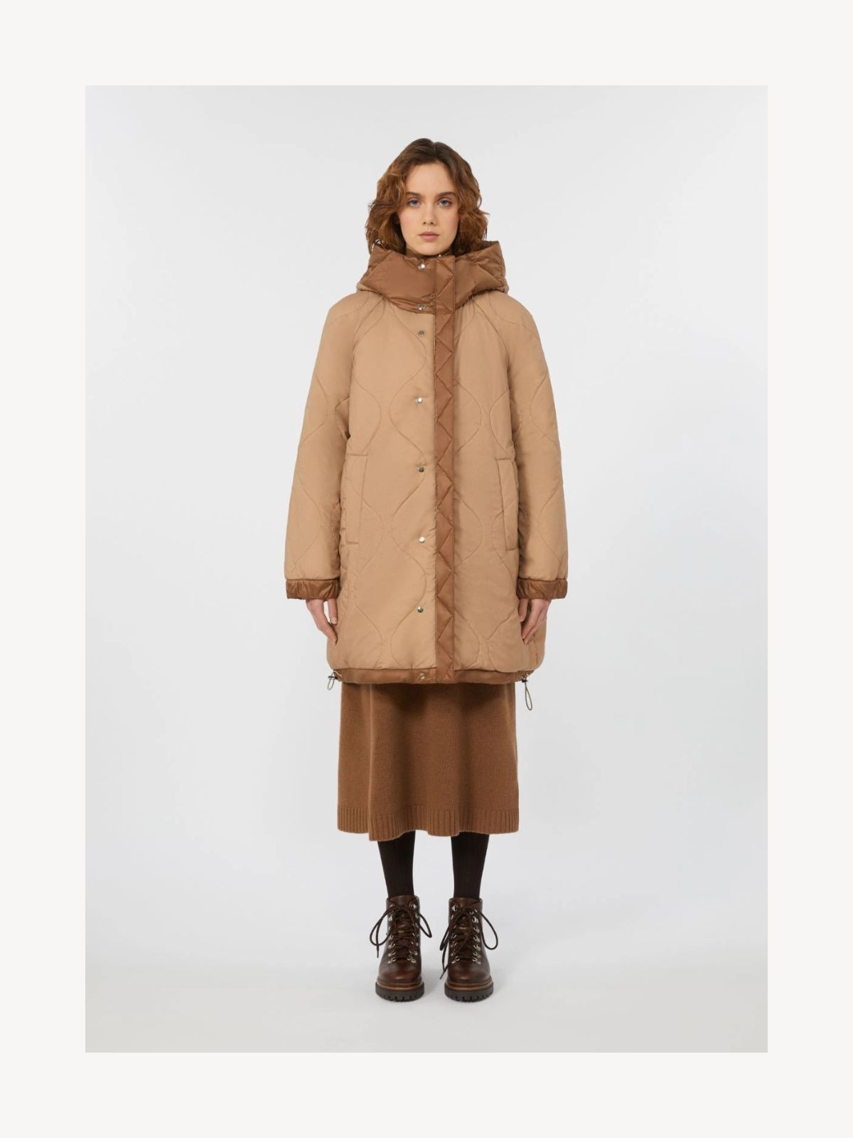 Vendbar dunjakke fra Max Mara i en quiltede kvalitet. Jakken har lommer på begge sider, og er i en afslappet pasform.