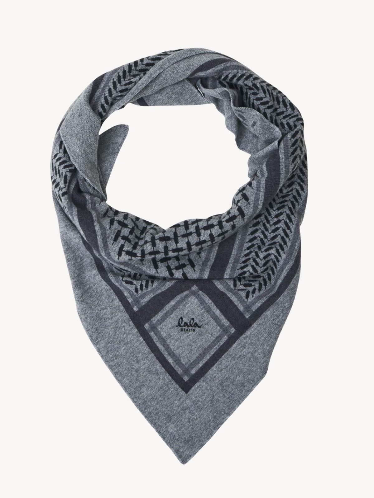 Kufiya-tørklædet er fremstillet i finstrikket cashmere med et klassisk kufiya-print via silketryk. Den bløde, luksuriøse kvalitet har en non-pilling finish, der sikrer lang holdbarhed.