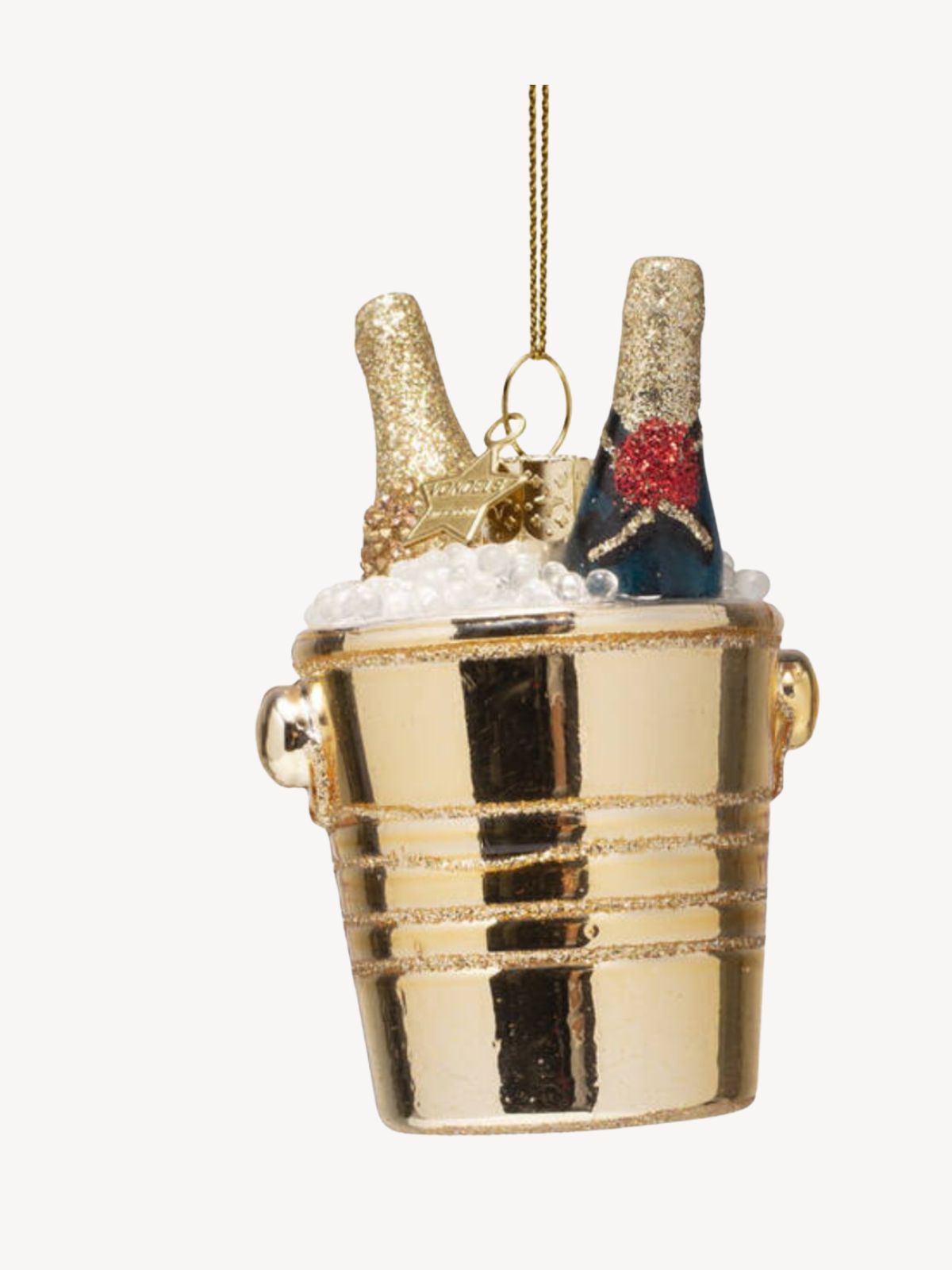BOTTLES OF CHAMPAGNE fra Vondels' er julekugler lavet af glas, mundblæst, håndmalet og dekoreret med den største omhu. Hvert stykke er unikt! Vi bekymrer os om denne planet, og vi prioriterer brugen af miljøvenlige materialer.