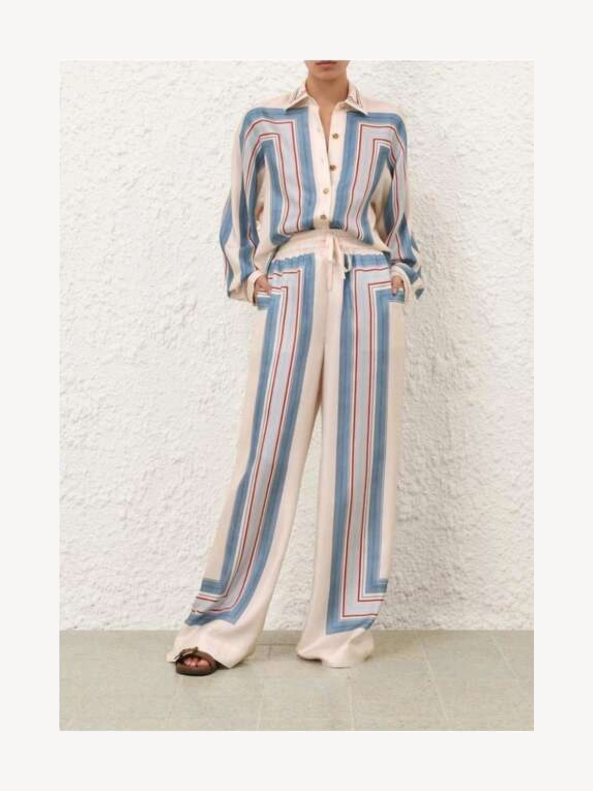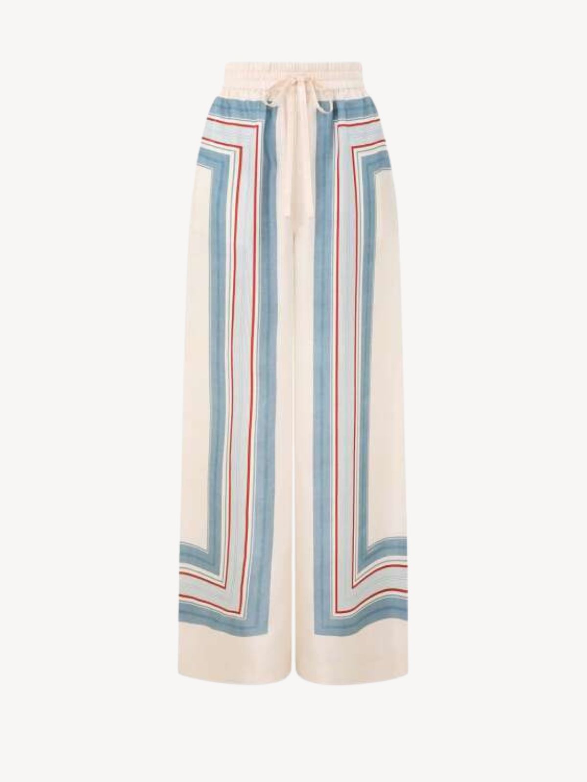 Raffinerede silkebukser fra ZIMMERMANN i Ticking Stripe mønster samt i relaxed design. Silkebukserne er med elastisk linning og lommer i sidesømmene.