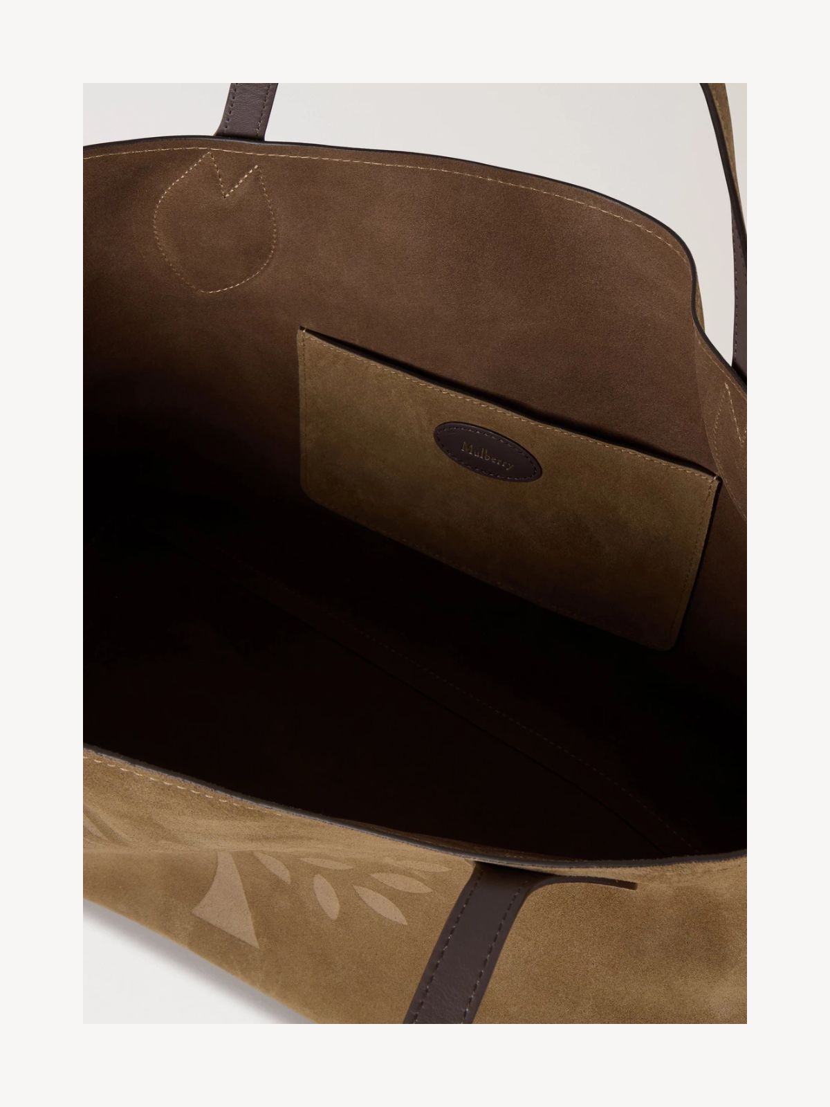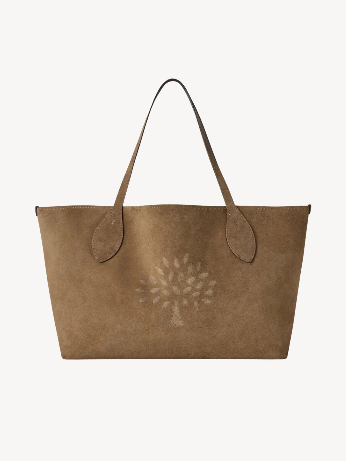Oversized Suede Tree Tote er en rummelig og elegant tote med Mulberry Tree-design, der giver masser af plads til alle dine hverdagsting. Tasken kombinerer funktionalitet med ikonisk Mulberry-stil.