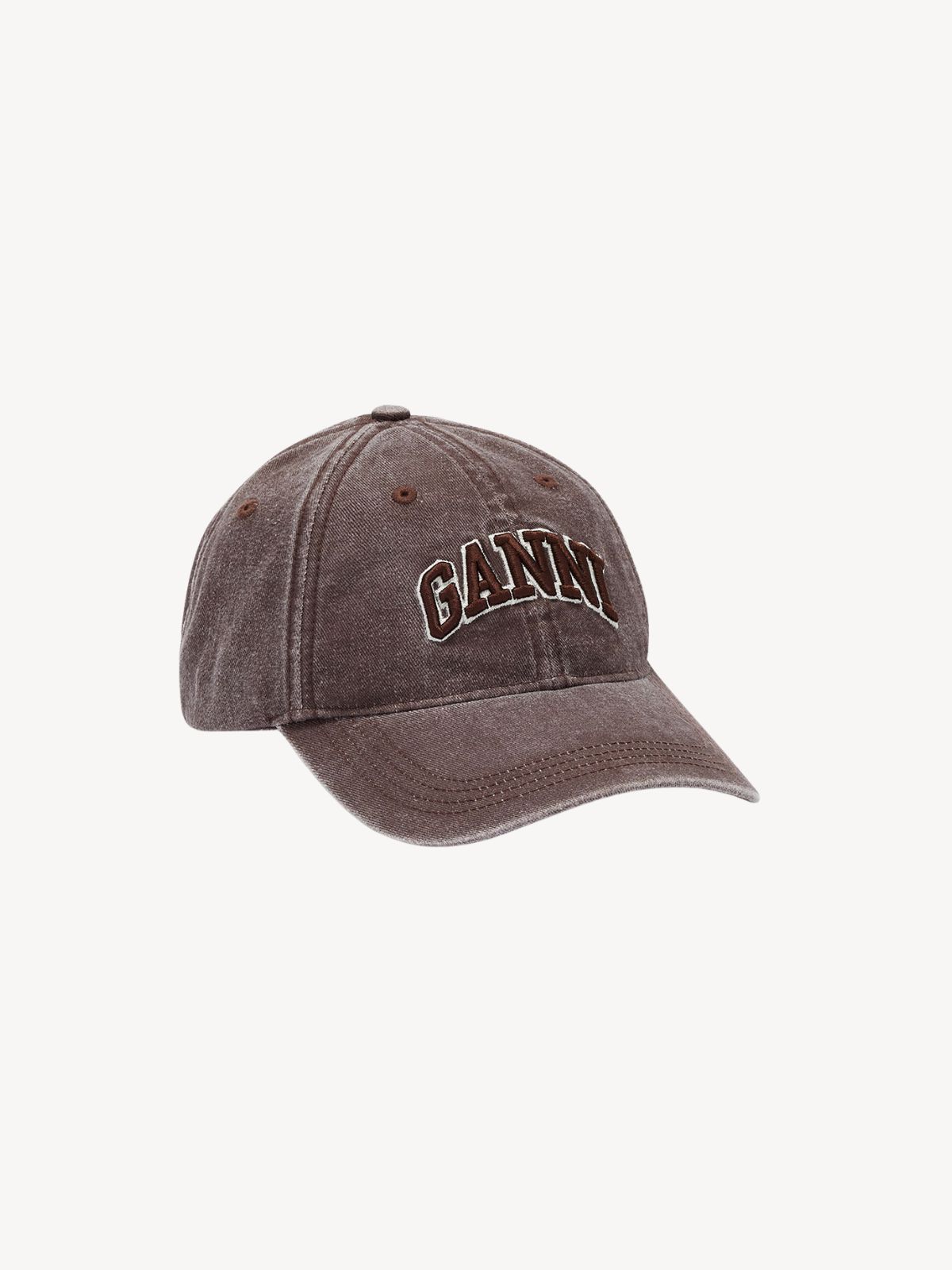 En klassisk og sporty kasket fra GANNI, designet i 100% økologisk bomuld for et behageligt og åndbart fit. Modellen har en justerbar strop bagpå, så du nemt kan tilpasse pasformen, samt et broderet GANNI-logo foran, som giver et cool og genkendeligt udtryk. Perfekt til både hverdag, sport og som et stilrent finish på dit outfit.
