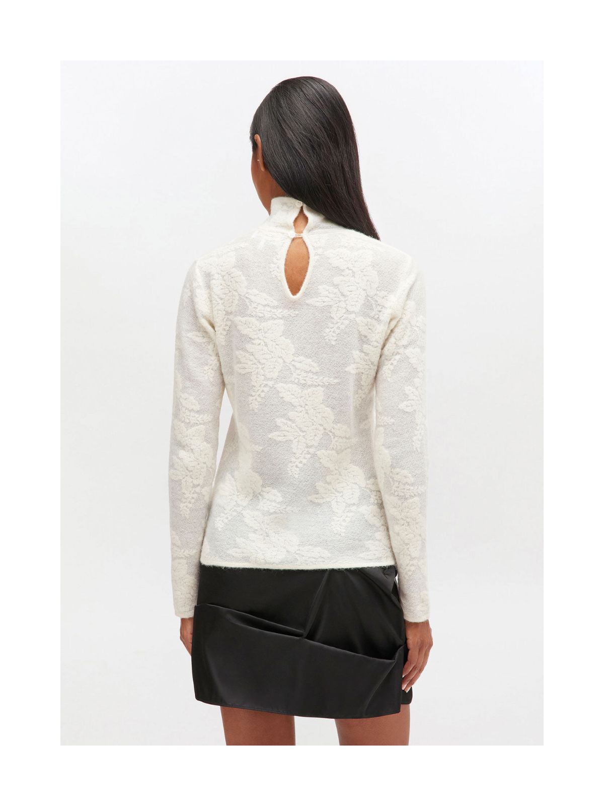 Elfenbensfarvet rullekravebluse med gennemsigtigt print