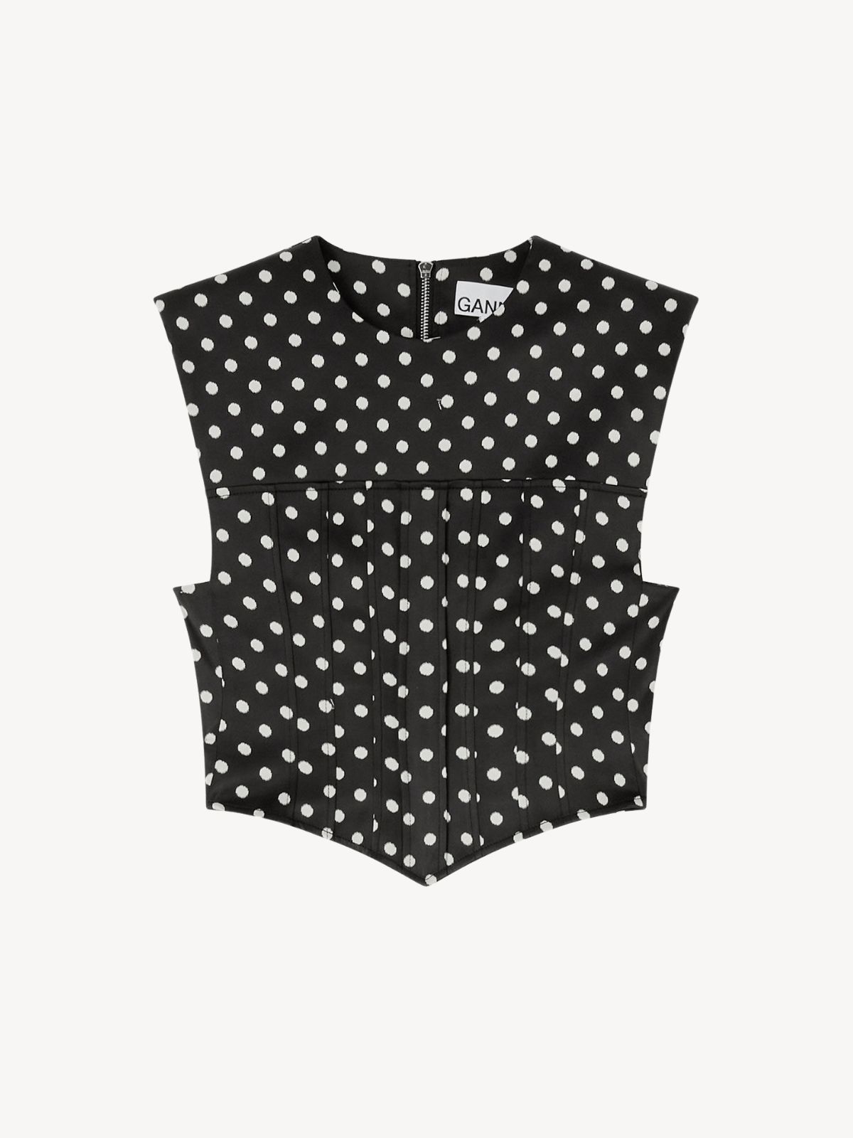 Detaljer: Rund hals, lynlåslukning, elastisk ryg, ærmeløs