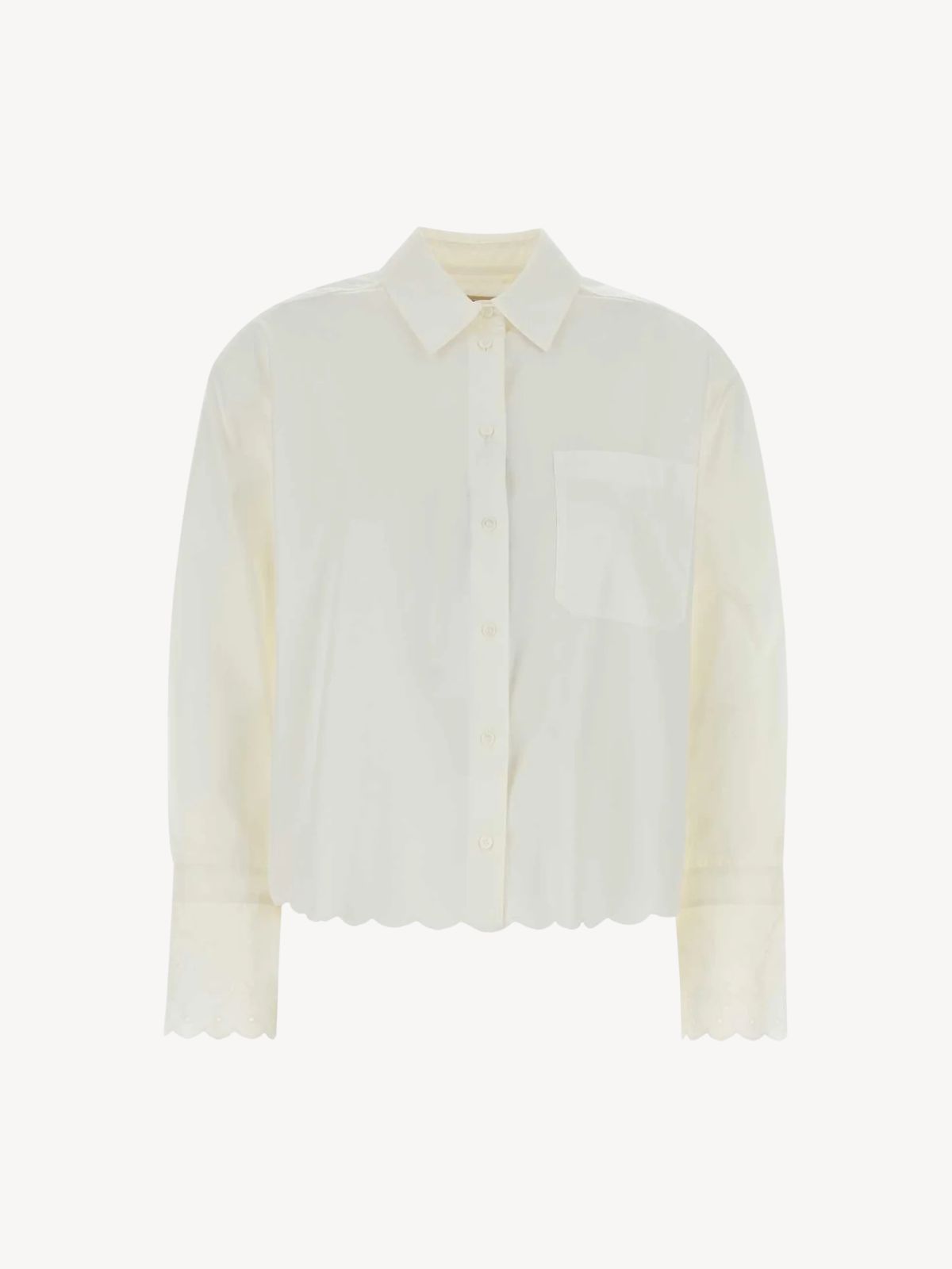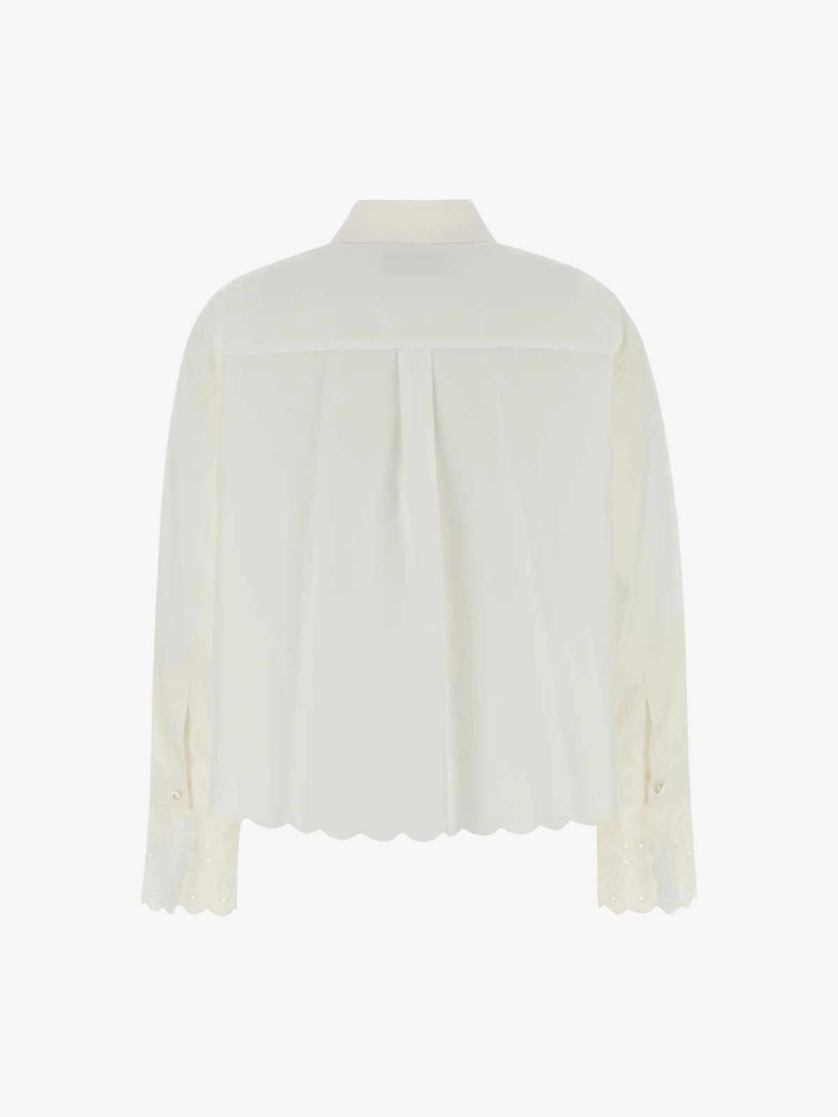 Flot skjorte i 100% bomuld med blondeærmer, der giver et feminint og let udtryk. Skjorten har enkel front og klassisk krave med manchetter.