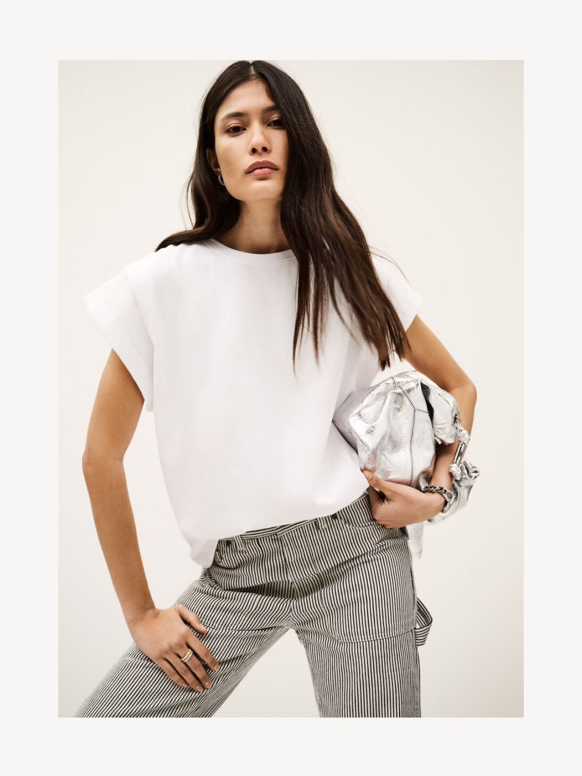 Blød og klassisk T-shirt fremstillet i 100% bomuld, der sikrer en behagelig og åndbar pasform. T-shirten har rund hals og korte ærmer, og de fine detaljer såsom ribkant ved halsen og let struktureret finish giver et tidløst look. Perfekt til både lag-på-lag styling og alene.