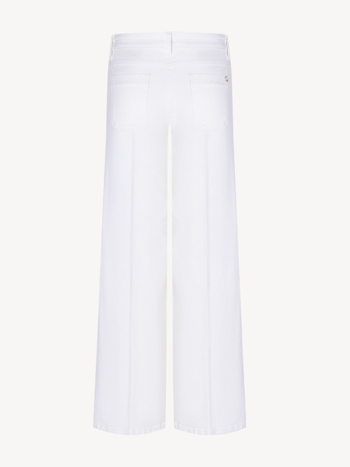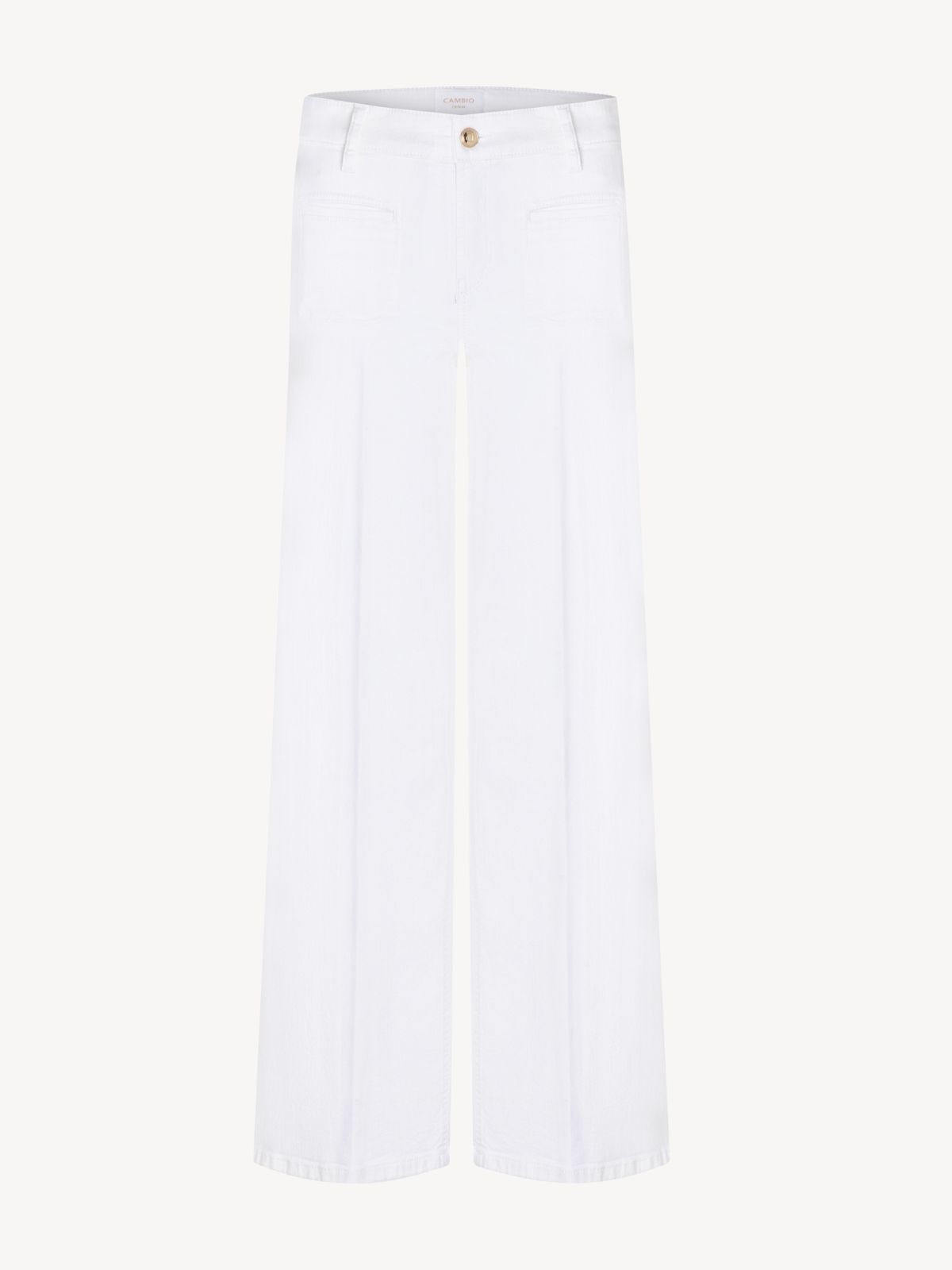 Hvide bukser i en blød bomuldsblanding med let stretch, der giver en behagelig pasform og god bevægelsesfrihed. Et stilrent valg, der er nemt at style til både hverdag og pænere brug.
