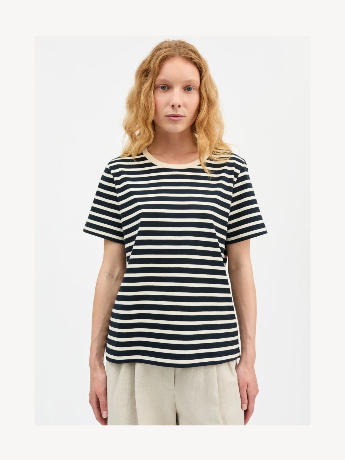 Klassisk T-shirt med afslappet pasform og bred rund hals. Enkel og tidløs med korte ærmer, fremstillet i økologisk bomuld.
