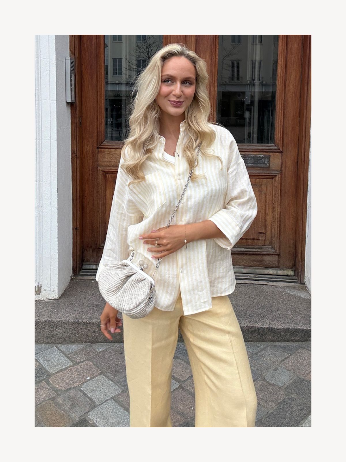 Elegant hørskjorte med en afslappet, let udvidet silhuet og lodrette striber, der giver et tidløst og stilfuldt udtryk. Skjorten er fremstillet i 100% hør og har klassisk skjortekrave, trekvartlange ærmer med manchetter samt en regulær pasform, der gør den velegnet både alene og som lag-på-lag.