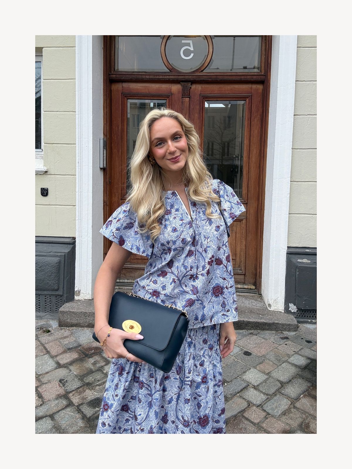 Tip: Kan styles med den matchende Ulla Johnson nederdel i blå med print for et komplet, harmonisk look.