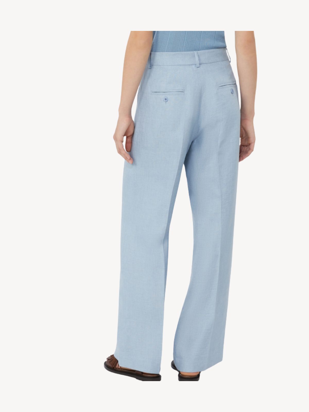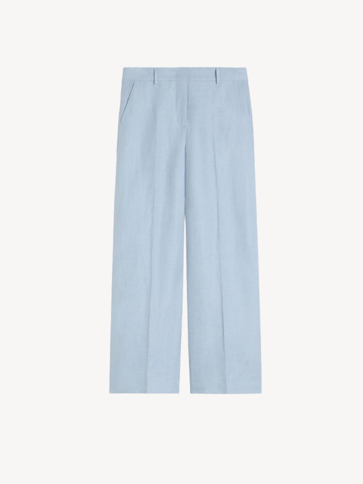 Elegant vide buks fra MaxMara i hør/linen med høj talje, hægtelukning, stiklommer samt bæltestropper.