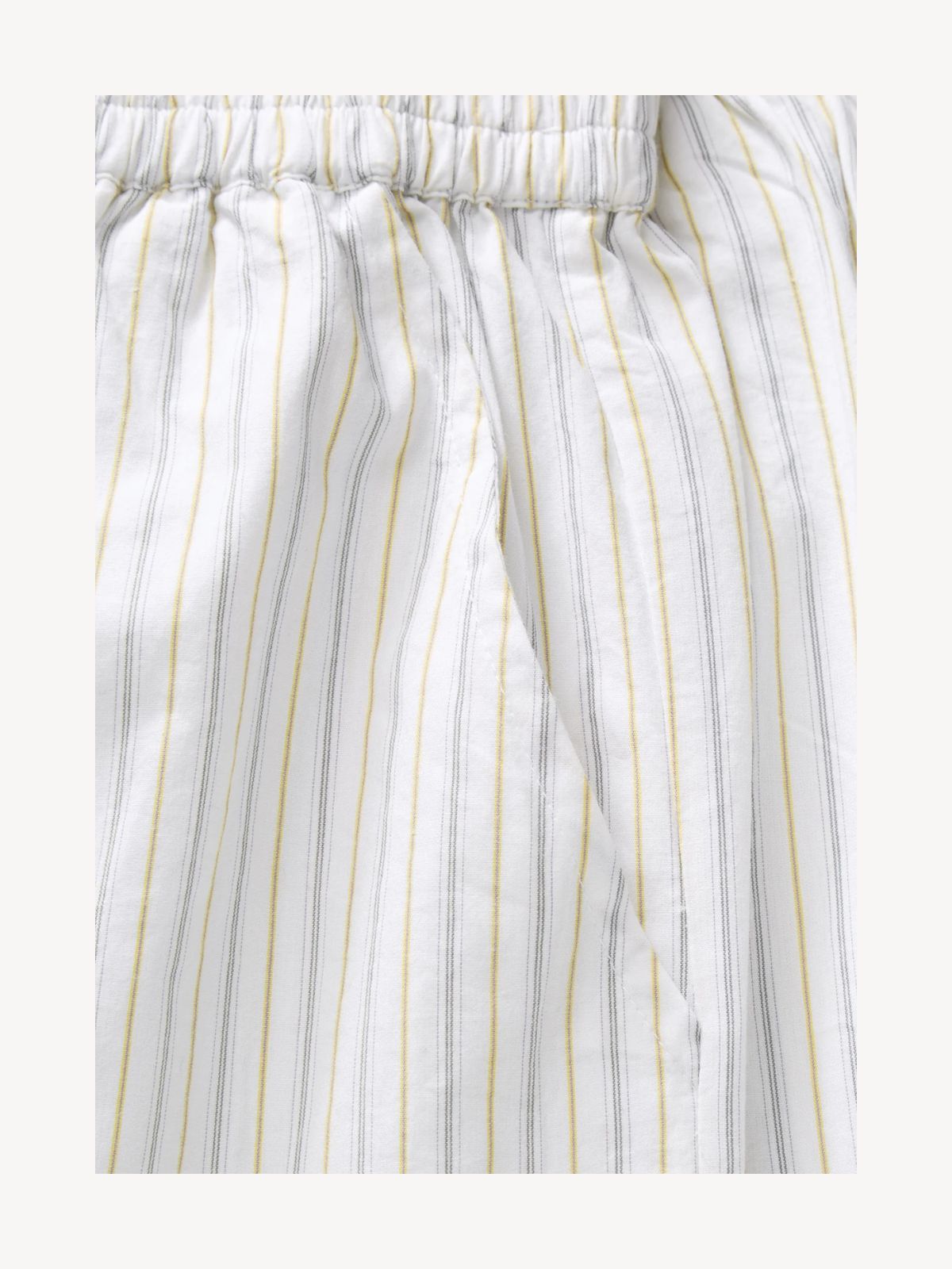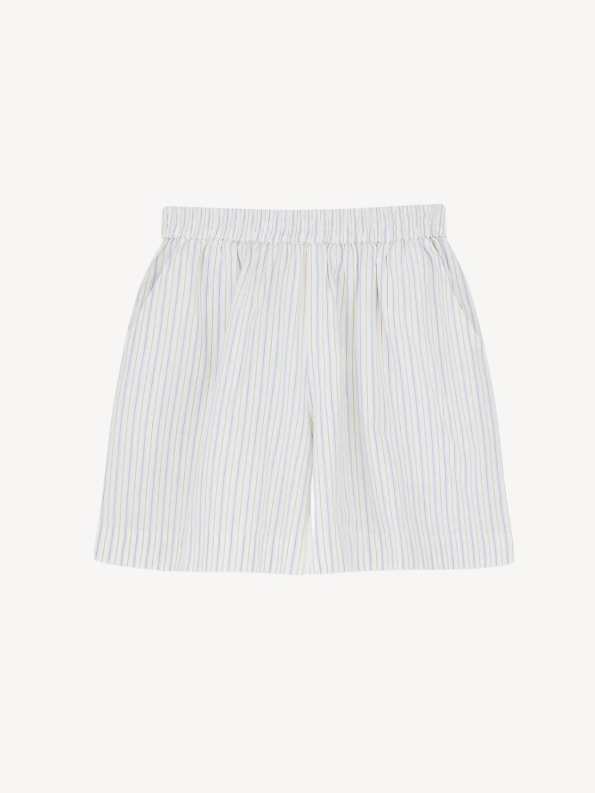 Disse behagelige bomuldsshorts kombinerer komfort med praktiske detaljer. De har elastisk talje og sidelommer, hvilket gør dem ideelle til afslappede sommerlooks eller hverdagsbrug. Fremstillet i 100% økologisk bomuld, GOTS-certificeret og produceret i Indien, sikrer de både blødhed, holdbarhed og bæredygtighed.