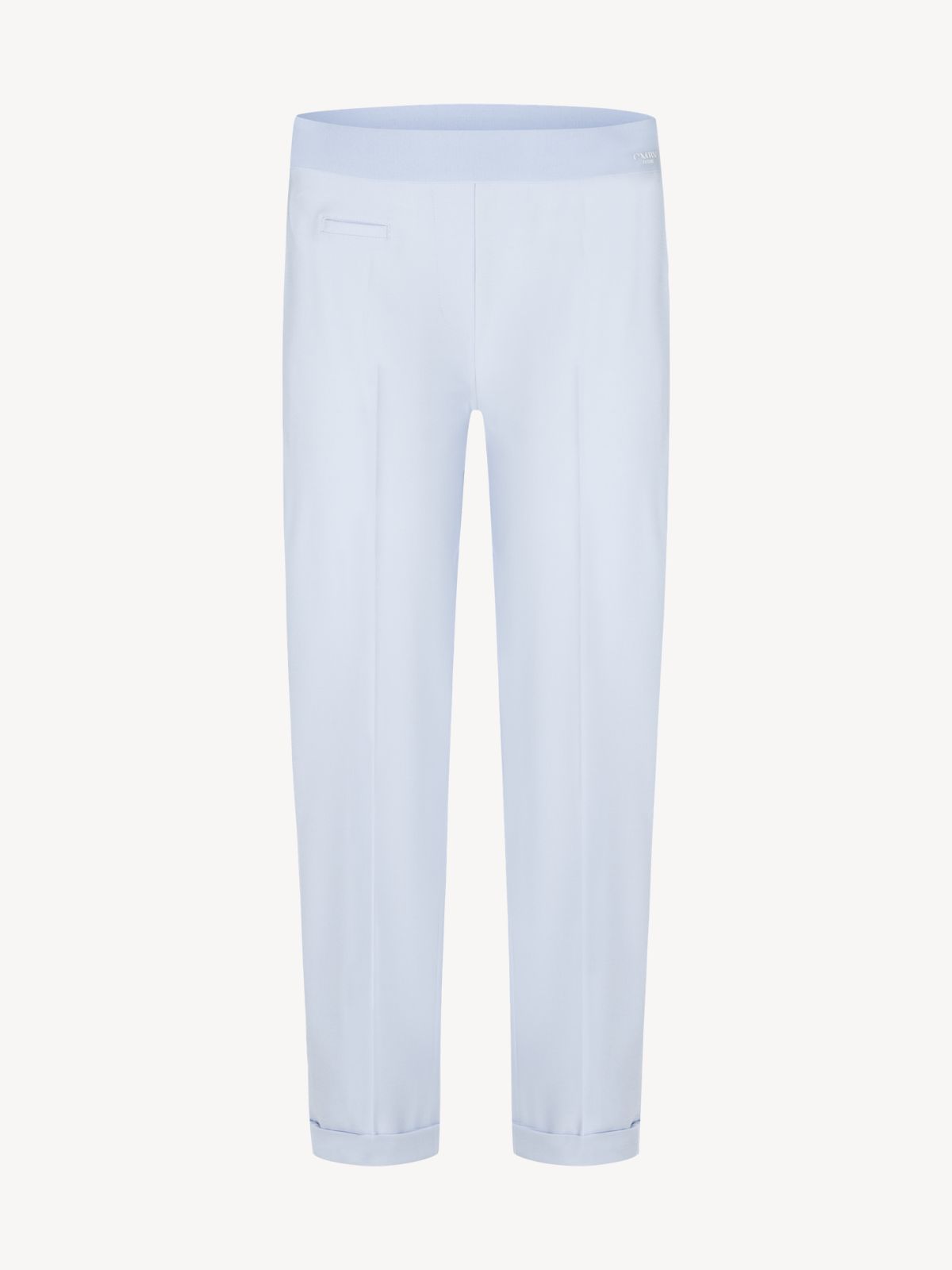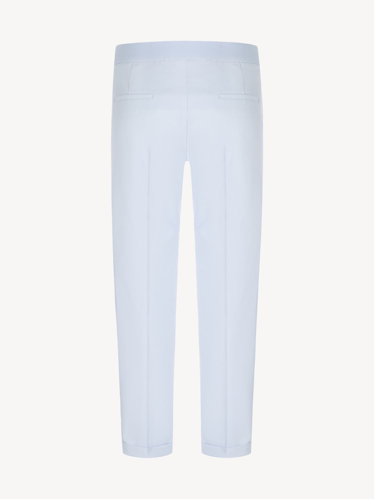 Disse bukser i en klassisk blå nuance er designet i en let og strækbar kvalitet, der kombinerer komfort med et pænt og velklædt udtryk. Materialeblandingen giver et smidigt fald og god bevægelsesfrihed, hvilket gør dem velegnede til både hverdag og mere pæne anledninger. Pasformen er moderne og alsidig, så de nemt kan styles med alt fra skjorter til enkle toppe.