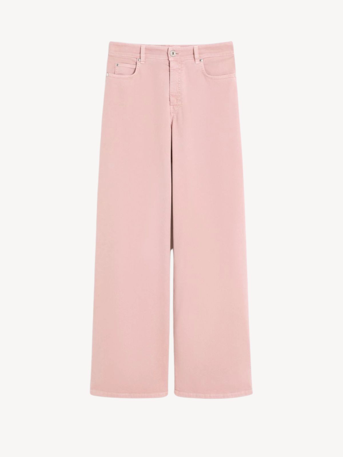 Disse lange bukser er lavet i garment-dyed stretch bomuldsdrill, der giver en behagelig pasform med let stræk. Bukserne har vide, lige ben og klassiske fem lommer, inklusive påsyede baglommer, hvilket giver et tidløst og praktisk design. Fly-dækket lynlås, metalknap, nitter og bæltestropper fuldender det rene og funktionelle look, mens den garment-dyed finish giver en unik, let ujævn struktur, der tilfører hver model karakter.