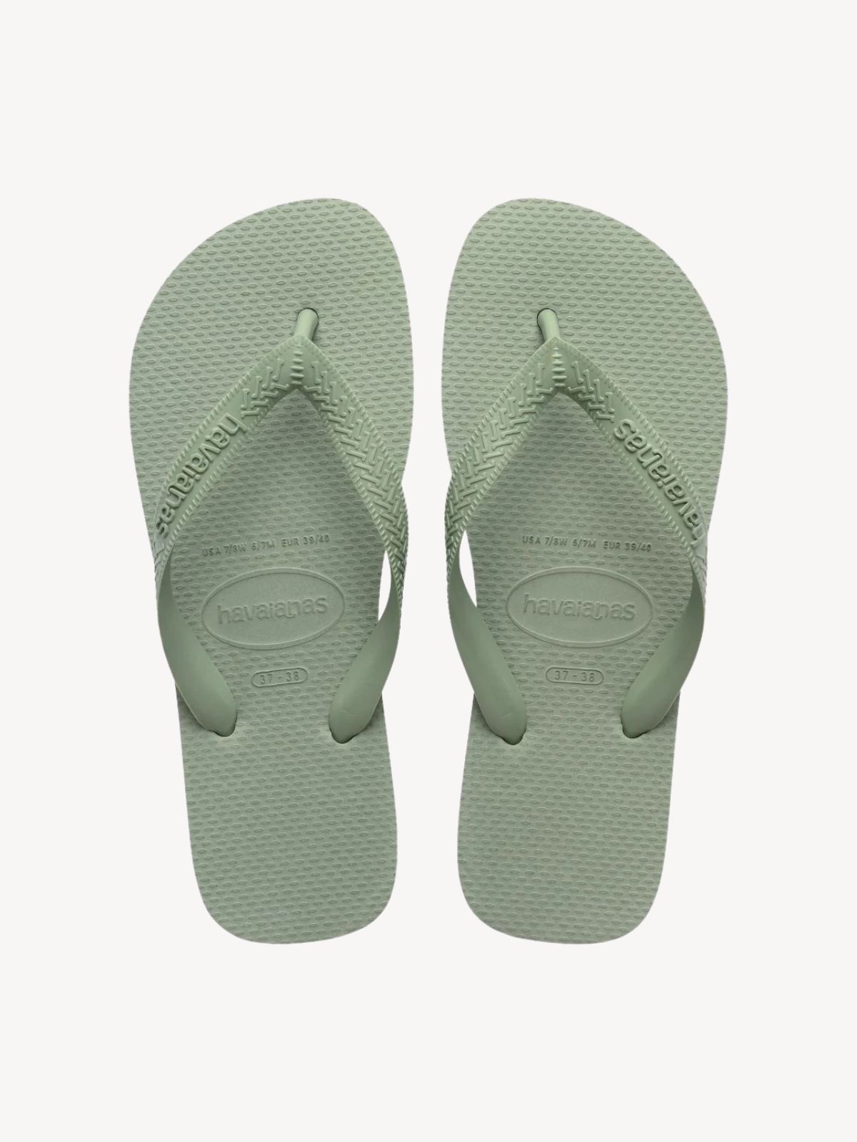 Den populære badesandal fra Havaianas i en frisk grøn farve er et enkelt og tidløst valg til sommergarderoben. Sandalen er nem at tage på og sidder behageligt på foden, hvilket gør den ideel til både strand, pool og varme hverdage. Et uundværligt must-have, når komfort og afslappet stil skal gå hånd i hånd i sommermånederne.