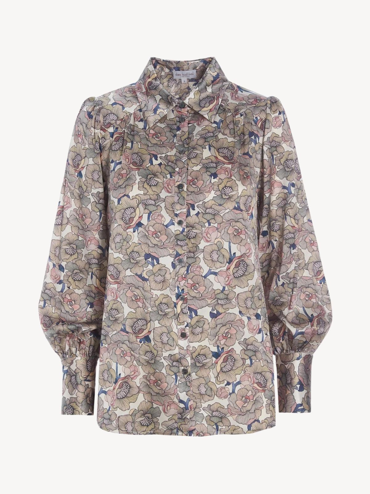Skjorte fra Dea Kudibal med klassisk krave og knaplukning i front. Skjorten har brede ærmer i fuld længde der afsluttes med kontrastmanchetter.