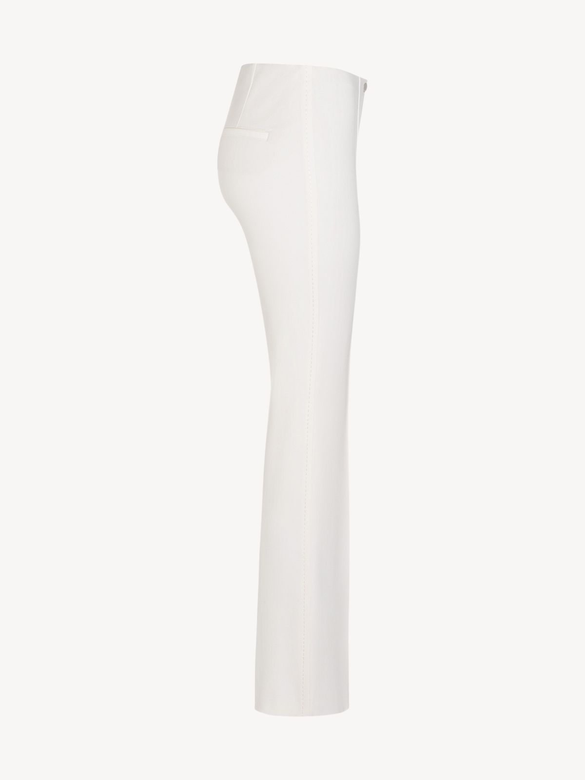 Buksen har slim fit med vidde nederst, fold midt på buksen samt to pyntelommer bagpå.