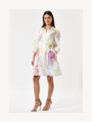 farverig kjole fra deakudibal med 3/4 ærmer og bindesnørre ved taljen. kjolen har kravedetalje og har knappelukning.