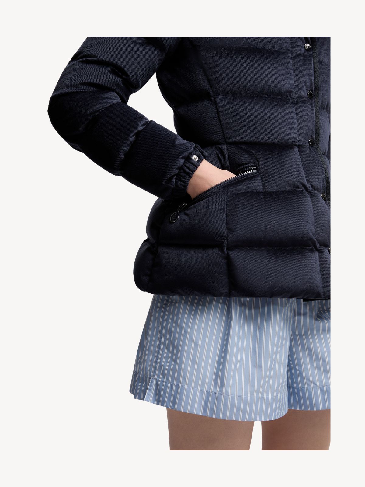 Lad dig inspirere af retro-looket fra 70’erne med Barante dunjakken, skabt i blød velour med et eksklusivt, fløjlsagtigt udtryk. Den korte pufferjakke fremhæver en feminin silhuet med markeret talje og let A-form, der giver et elegant og moderne twist. En justerbar hætte og ikonisk logodetalje fuldender designet.
